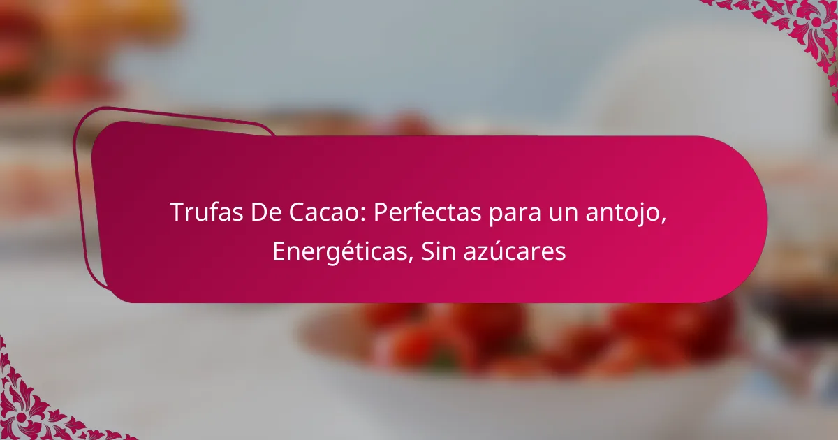 Las trufas de cacao son deliciosos bocados que combinan pasta de cacao con ingredientes naturales, perfectas para satisfacer un antojo dulce. Al optar por versiones sin azúcares añadidos, no solo disfrutarás de su exquisito sabor, sino que también obtendrás beneficios energéticos y para la salud. Estas golosinas son una excelente alternativa nutritiva para quienes buscan un capricho saludable.